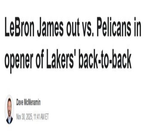 北京時間12月1日,湖人球星勒布朗-詹姆斯因左腳傷病管理,將缺席今日對陣新奧爾良鵜鶘隊的比賽。即將41歲的詹姆斯此前因坐骨神經(jīng)痛缺席了本賽季前14場比賽,上賽季也曾因左腳傷勢缺陣。