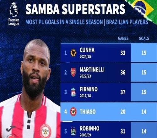 當(dāng)?shù)貢r(shí)間1月4日,英超第20輪,布倫特福德客場(chǎng)對(duì)陣埃弗頓。布倫特福德前鋒伊戈?duì)?蒂亞戈上演帽子戲法,幫助球隊(duì)取勝的同時(shí)也將自己本賽季的英超進(jìn)球數(shù)提升到14粒,位列射手榜第二。